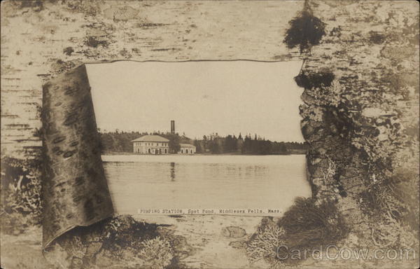 Front: 57 111 PUMPING STATION, Spot Pond, Middlesex Fells, Mass. COPYRIGHT 1906 BY C. M. NELSON. Back: R. C. CO., SELLING AGENTS, BOSTON, MASS. Stamp Here