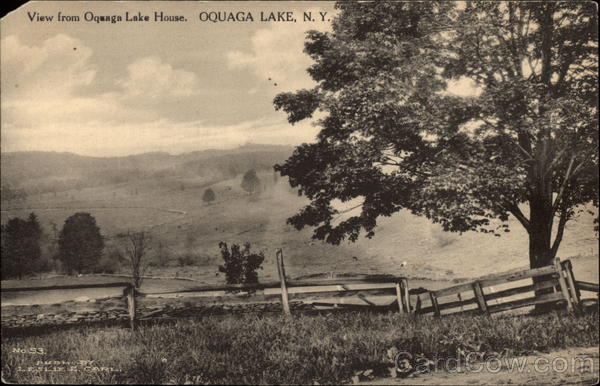 Front: View from Oquaga Lake House. OQUAGA LAKE, N. Y. No 53. PUBH BY LESLIE E CAR Back: Kavis MESSAGE ON THIS SIDE. 1c. 2c. THE ALBERTYPE CO. BROOKLYN, N. Y.