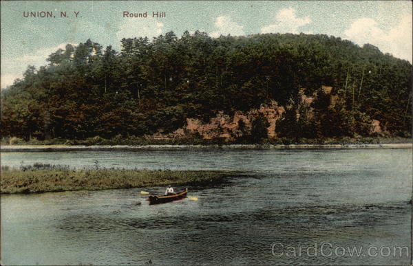 Front: UNION, N. Y. Round Hill 20 Back: COMMUNICATIONS * Dear Mac 10728 рек 2- home on your way we want to see you. Frances, UNION 1909 7 AM We are haring beautiful, Miss Mac Stakeman, rain. You must plan to visit us 35 N. Church St. Cortland, n.y.