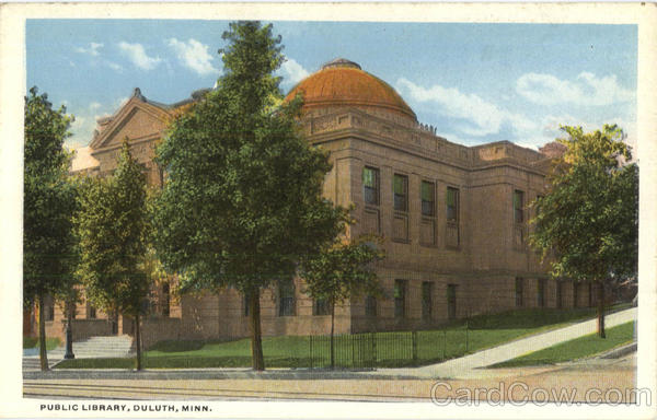 Front: PUBLIC LIBRARY, DULUTH, MINN. Back: PUBLISHED BY DULUTH PHOTO ENGRAVING CO.. DULUTH, MINN. PHOTO BY MC KINZIE. A-20207 -2 THIS SPACE FOR ADDRESS ONLY.