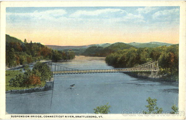 Front: SUSPENSION BRIDGE, CONNECTICUT RIVER, BRATTLEBORO, VT. Back: PUBLISHED BY CHAS. W. HUGHES, MECHANICVILLE, N. Y. STAR QUALITY FOR WRITING MESSAGES. ICAN A-42470 THIS SPACE FOR ADDRESS ONLY.
