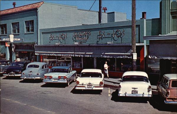 Front: OLSON'S ICE CREAM KE CNAM 94 3315 Back: MILWAUKIE, OREGON Olson's Variety Store, center of business district. Color by Bill Hupp Distributed Only by Smith's Scenic Views, Tacoma, Washington S24884