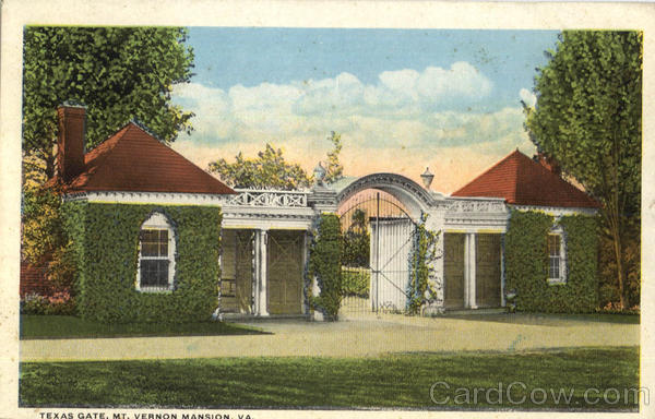The Texas Gate, the Entrance to Mt. Vernon for visitors by the Electric Railway was erected by the Masonic and other patriotic societies of the State of Texas.