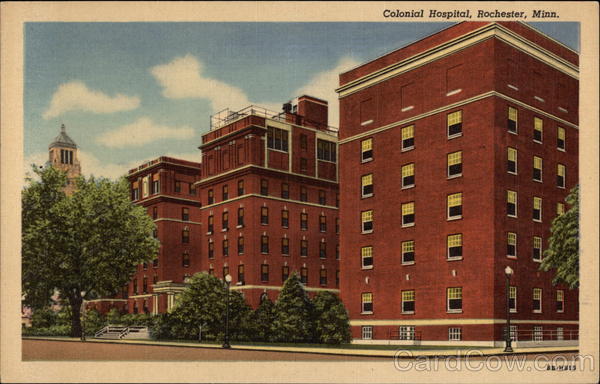 Front: Colonial Hospital, Rochester, Minn. 日日 8B-H815 Back: ROCHESTER NEWS AGENCY, ROCHESTER, MINN. 100 KF33