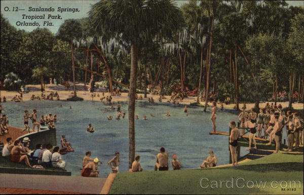 Front: O. 12 Sanlando Springs, Tropical Park, Orlando, Fla. 9A-H182 Back: ORANGE NEWS CO., ORLANDO, FLA. ROG