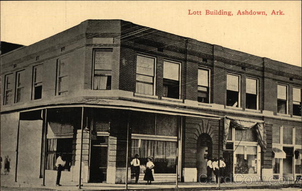 Front: Lott Building, Ashdown, Ark. KA Back: Domestic and PORT 3cort KANS. 761-3—Published by The Central Post Card Company, Fort Scott, Kansas.