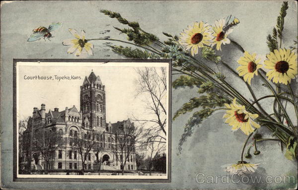 Front: Courthouse, Topeka, kans. Back: Ooooo Post Gard 730 PM 1908 Concea Hall Stationery Co., Pub., Topeka, Kans Leller reoria Pope ka haus 1821 Mrs. Maine Pronest Mallin getting Bloomington Kon lende Georg