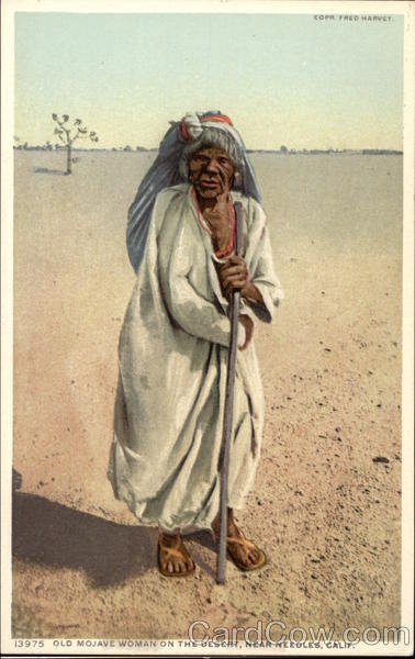 13975 OLD MOJAVE WOMAN ON THE DESERT, NEAR NEEDLES, CALIF.