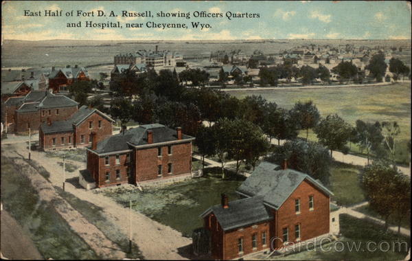 Front: East Half of Fort D. A. Russell, showing Officers Quarters and Hospital, near Cheyenne, Wyo. 11 Back: Bros MOU Publis 8. shers and Island Possessions Cuba, Canada and Omah Neb. QUALITY SERIES PUBLISHED BY BARKALOW BROS., OMAHA, NEB. A-13483