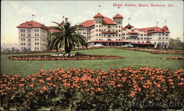 Front: Hotel Potter, Santa Barbara, Cal. Back: ORNUX INTO COLORPRINT CO LOS ANGELES (LACE POSTAGE: Canada 1c: Cuba Foreign 2c Ray Elemen 26 Dec 1989 San Francisco. Pub. by The O. Newman Company. Los Angeles, M3 On the Road of Thousand Wonders.