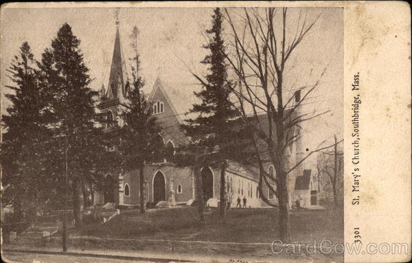 Front: St. Mary's Church, Southbridge, Mass. Back: THIS SPACE MAY BE USED FOR CORRESPONDENCE. NE, PAPER & STATIONERY CO. MFRS. AYER, MASS.