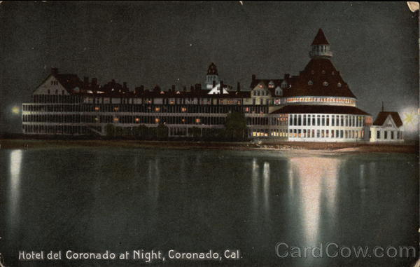Front: PRIPI Hotel del Coronado at Niqht, Coronado, Cal. Back: Island Pos. Cuba 1o 2 C No. L. 89. Publ. by Newman Post Card Co., Los Angeles, Cal. (Made in Germany.) Write here.