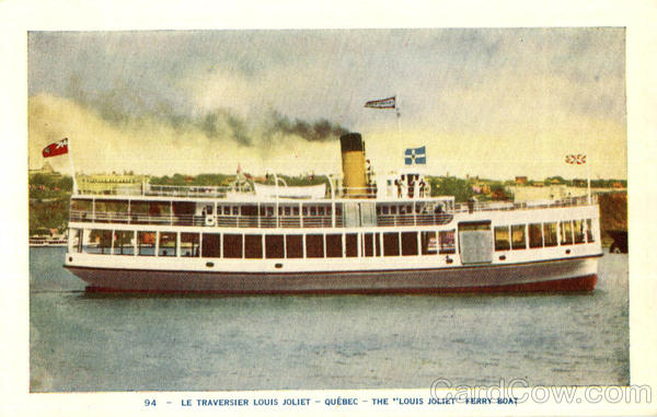 Front: IEE 94 LE TRAVERSIER LOUIS JOLIET - QUÉBEC THE "LOUISS JOLIET" FERRY BOAT Back: LORENZO AUDET ENR. ÉDITEUR, 1226 AVE. DES PINS, QUÉ., P. Q. CARTE-POSTALE 4.