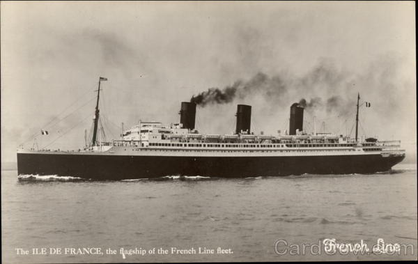 Front: TIL French Line The ILE DE FRANCE, the flagship of the French Line fleet. Back: The Garraway Company, Rutherford, New Jersey
