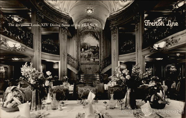 Front: Frentch Line The gorgeous Louis XIV Dining Salon of the FRANCE. Back: The Garraway Company, Rutherford, New Jersey