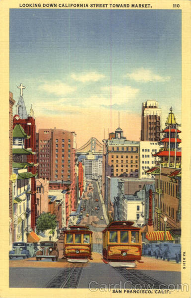 LOOKING DOWN CALIFORNIA STREET TOWARD MARKET,