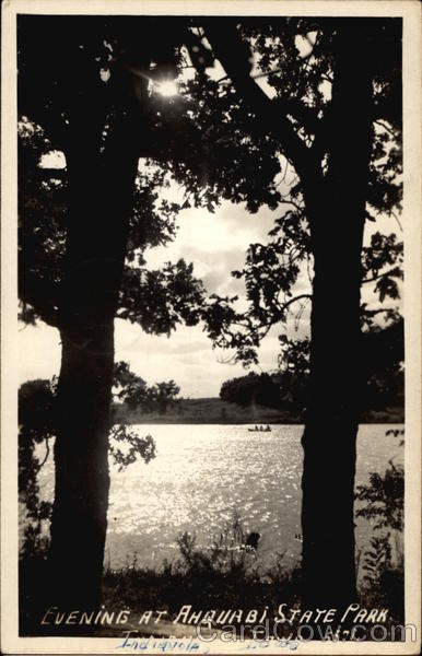 Front: EVENINE AT AHQUABI STATE PAK Back: POSETANO STAILS NOSTAGE MAY 23 2 30PM 1947 CORRESPONDENC VOWA, cannina Sarchatt Coute #2 Cadeansta Service John Wm. Hurley 75 Hooker S Goldwater Michigan Jawa