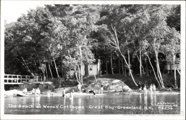Front: The Beach at Weeks Cottages - Great Bay-Greenland, N.H, 54256 A-A:Peterson Greenland, NH. Back: 4 4 Koda PLACH Paper