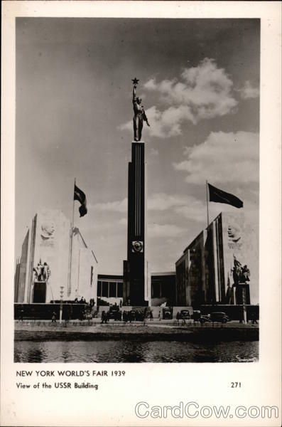 Front: NEW YORK WORLD'S FAIR 1939 View of the USSR Building 271 Back: A. MAINZER, 230 FIFTH AVE, NEW YORK, N, Y. LICENSED NEW YORK WORLD'S FAIR ACTUAL PHOTOGRAPH LIC 932 ONYWF