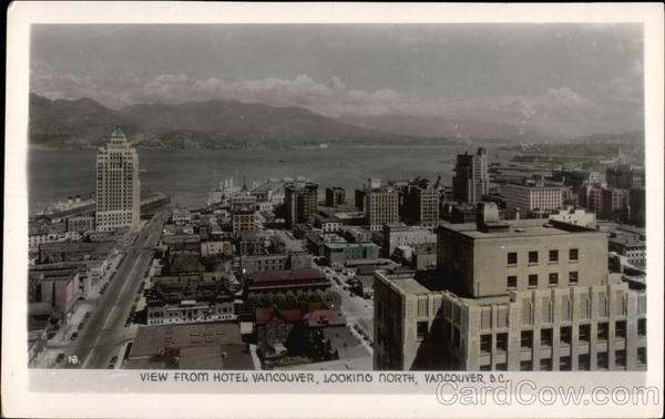 Front: ORCATREIC CLM 18. VIEW FROM HOTEL VANCOUVER, LOOKING NORTH, VANCOUVER, B.C. wai s Back: MADE IN CANADA BY THE GOWEN, SUTTON CO, LTD., VANCOUVER, BC. POSTCARO