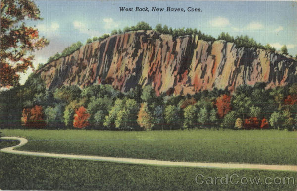 | West Rock, a trap rock cliff 400 feet high, flanks the city of New Haven on the northwest. The summit, accessible by a beautiful drive, affords an extensive view of the city, its many world-famous industries, fine residential districts, and Long Island Sound. The famous Baldwin Parkway extends along West Rock Ridge for six miles. |