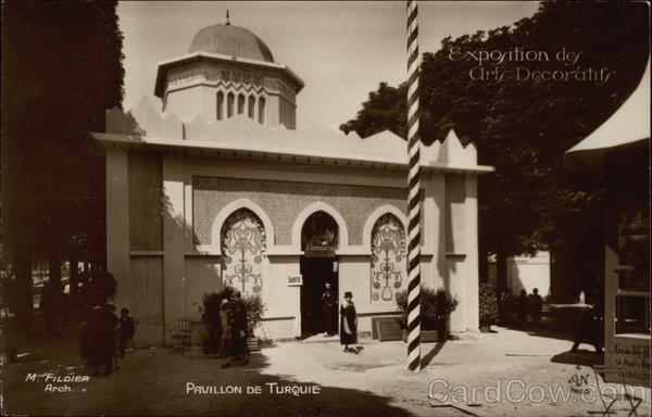 Front: Expgition de Ari, Decoralif, SORTIE Geo W IH SI Panl's Per IRMING AN M. FILDIER Arch. PAVILLON DE TURQUIE Back: Made in France Fabriqué on Franco