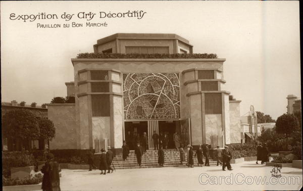 Front: Exporition der Artr Décoratifs PAVILLON DU BON MARCHÉ AVOM RCET Torennd ISERHE 10 AN Back: Made in France - Fabriqué en Francs
