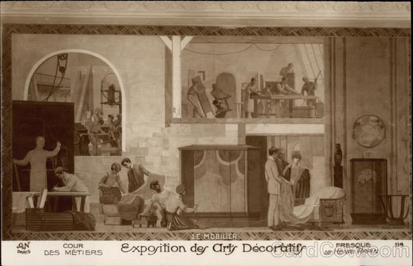 Front: HenRi RAPIN LE MOBILIER AN 114 COUR DES MĖTIERS Expoition der Arts Décoratif FRESQUE DE HENRI RAPIN Back: vada in France - Fabriquo Fabriqué en Prus