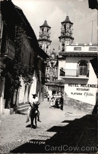 Front: HOTEL MELENDEZ VIRGINIA PLATA Y CUROSIDADES RESTAURANT Ofelia. PLATERIA TAXCO.GRO, Back: Papel -- TARJETA POST L SELLO 16