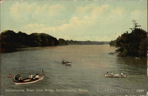 Front: Damariscotta River from Bridge Damariscotta, Maine. 213957 Back: The Leighton & Valentine Co., N.Y. City. F POST THROUGHOUT TRADE MARK. T& QUALITY FAMOUS THE WORLD to