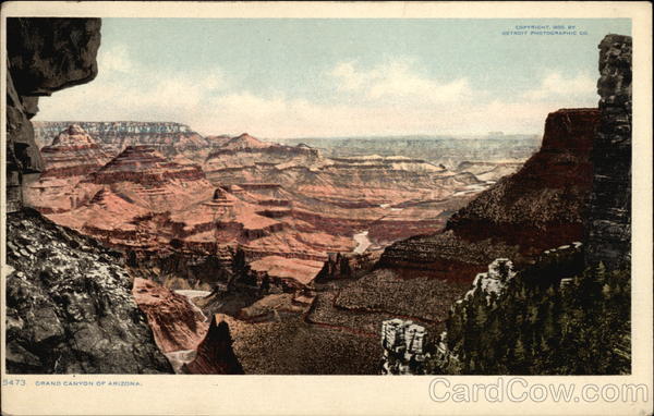 Front: COPYRIGHT. 1900. BY DETROIT PHOTOGRAPHIC CO. 5473. GRAND CANYON OF ARIZONA, Back: FOREIGN. TWO MADE ONLY BY DETROIT PUBLISHING CO. "PHOSTINT"CARD. THIS SPACE MAY BE USED FOR MESSAGE.