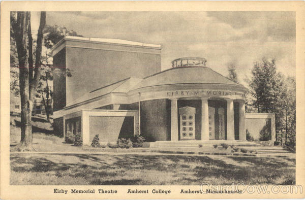 Front: KIRBY MEMORIA Kirby Memorial Theatre Amherst Collége Amherst, Massachusetts Back: 2- THE FINEST AMERICAN MADE VIEW POST CARDS-THE ALBERTYPE CO., BROOKLYN, N.Y.