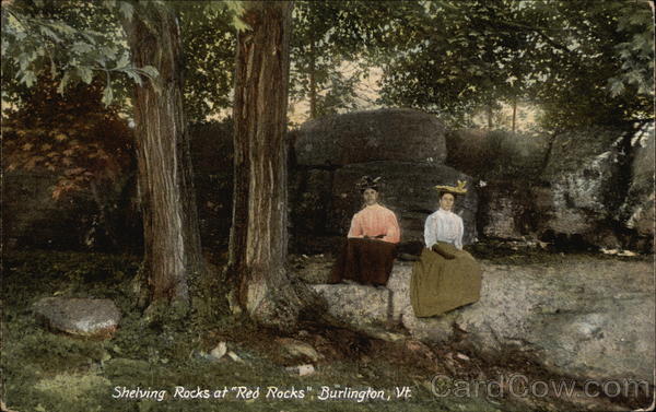 Front: Shelving Rocks at “Red Rocks", Burlington, Vt Back: 3002 10 7 AM 1909 VT No. 20012. The Hugh C. Leighton Co., Manufacturers, Lloss that book like you and Miss E E Bean ob your sis GRACE iyim