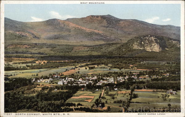 Front: MOAT MOUNTAINS 71597 NORTH CONWAY, WHITE MTS., N. H. WHITE HORSE LEDGE Back: 2517 "PHOSTINT” TRADE MARK - REG U S PAT OF MADE ONLY BY DETROIT PUBLISHING CO 19 FOREIGN. TWO XV THIS SPACE MAY BE USED FOR MESSAGE.