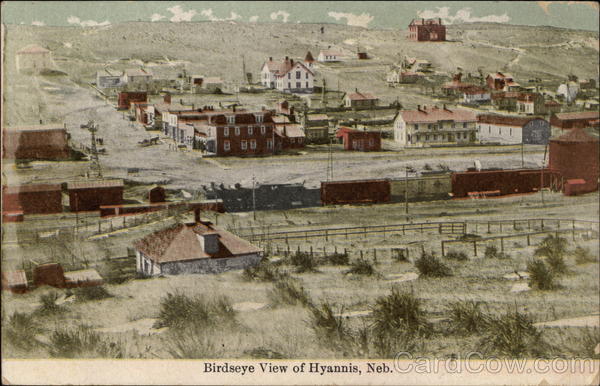 Front: Birdseye View of Hyannis, Neb. Back: 25 FOR ADRESS ONLY Hyum et fan 2 16 aps 27 re I got home 40 all right mus, & de Brason benturille ceopets Love a a &