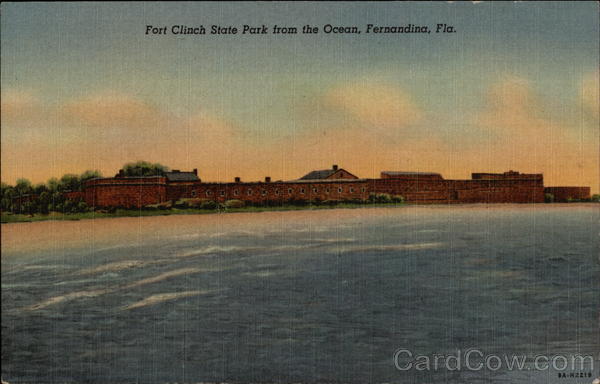 Front: Fort Clinch State Park from the Ocean, Fernandina, Fla. 9 A-H2219 Back: LOCKWOOD'S DRUG STORE, FERNANDINA, FLA. 8- 13 - 57