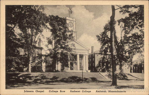 Front: Johnson Chapel College Row Amherst College Amherst, Massachusetts Back: TME PINEST AMERICAN MADE VIEW POST CARDS-THE ALBERTYPE CO., BROOKLYN, N. Y.