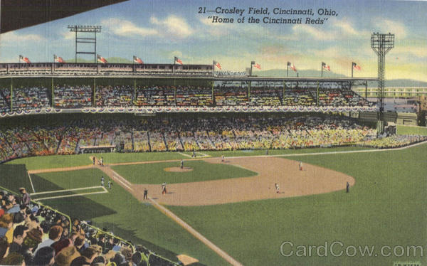 Front: 21-Crosley Field, Cincinnati, Ohio, "Home of the Cincinnati Reds" Back: J. LOUIS MOTZ NEWS CO., CINCINNATI, O.