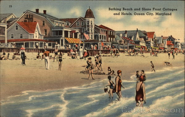 Front: 15 Bathing Beach and Shore Front Cottages and Hotels, Ocean City, Maryland TROKU Back: Dear Grandmother I am havin MADE IN U. S. A MO. mrs. very good time go in the water 519 Ingleside every day. With love, Catonsville anna mae mda, ave 68003