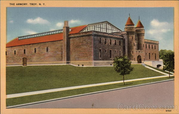 Front: THE ARMORY. TROY. N. Y. 1111 61561 Back: MADE IN U. S. A *TICHNOR QUALITY VIEWS REG. U.S. PAT, OFF. MADE ONLY BY TICHNOR BROS., INC., BOSTON, MASS. PUBLISHED BY TROY NEWS CO., TROY, N. Y.