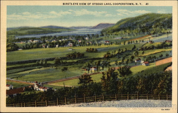Front: BIRD'S-EYE VIEW OF OTSEGO LAKE, COOPERSTOWN, N. Y. 41 5A-H851 Back: C. W. HUGHES & CO., INC., MECHANICVILLE, N. Y.