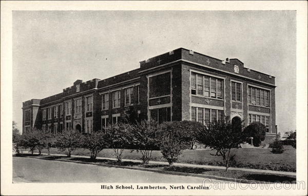 Front: High School, Lumberton, North Carolina Back: lor 9-19-49 L-24 Teve / Cad A 'Natural-Finish' Card Made by Graycraft Card Co., Danville, Va.