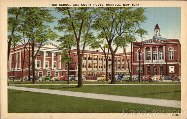 Front: HIGH SCHOOL AND COURT HOUSE, HORNELL, NEW YORK E-8093 Back: PUBLISHED BY WM. JUBB CO.. INC., SYRACUSE, N. Y. 150