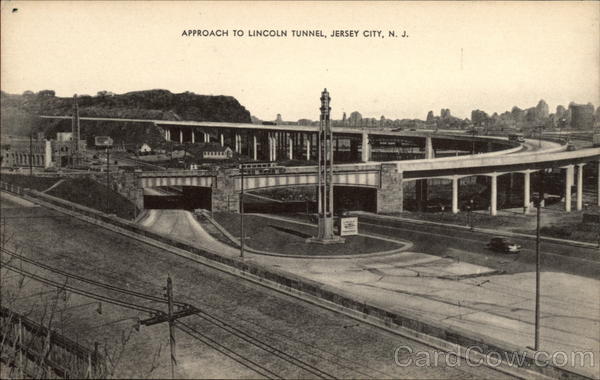 Front: APPROACH TO LINCOLN TUNNEL, JERSEY CITY, N. J. LINCOLN Back: HIM SCOUW VO A MAYROSE A-OIKEU ZmUZ- MESSAGE HERE