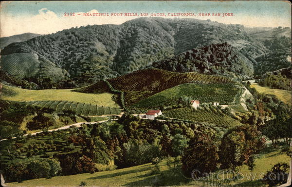 Front: 2552 BEAUTIFUL FOOT HILLS, LOS GATOS, CALIFORNIA, NEAR SAN JOSE. Back: MADE IN AMERICA BY EW.H.MITCHELL AT SAN FRANCISCO.CALIFORNIA. FOREIGN- THIS SPACE FOR ADDRESS ONLY
