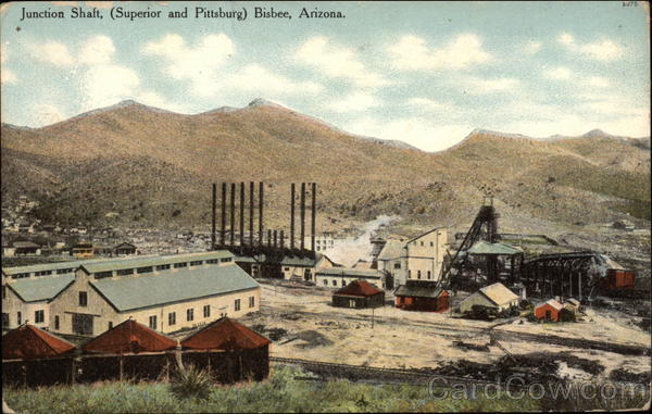 Front: Junction Shaft, (Superior and Pittsburg) Bisbee, Arizona. RAKY 2075 Back: PUBLISHED BY THE BENHAM CO., LOS ANGELES, CAL. POST A CARD MADE IN AMERICA 2 CENTS