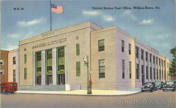 Front: W.B.-10 United States Post Office, Wilkes-Barre. Pa. IUNITED STATES/ POST OFFICE /Gron LESSEE Back: SHR461 250 MADE IN U, S. A THE MEBANE GREETING CARD COMPANY, WILKES-BARRE, PA. 63531