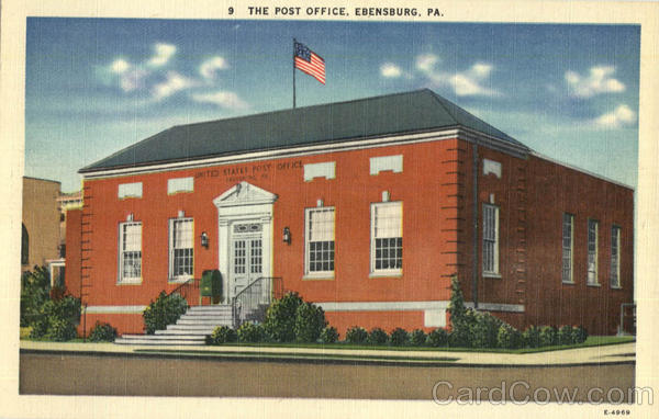 Front: 6. THE POST OFFICE, EBENSBURG, PA. UNITED STATES POST OFFICE E-4969 Back: 50 J.P. WALMER. BOX 224. HARRISBURG, PA.