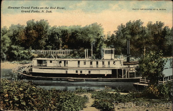 Front: Steamer Grand Forks on the Red River, Grand Forks, N. Dak. GRANDFO PHOTO COPYRIGHTED BY B. BLOOM. LLL Back: A-12338 TWO GENTS THIS SPACE FOR ADDRESS ONLY