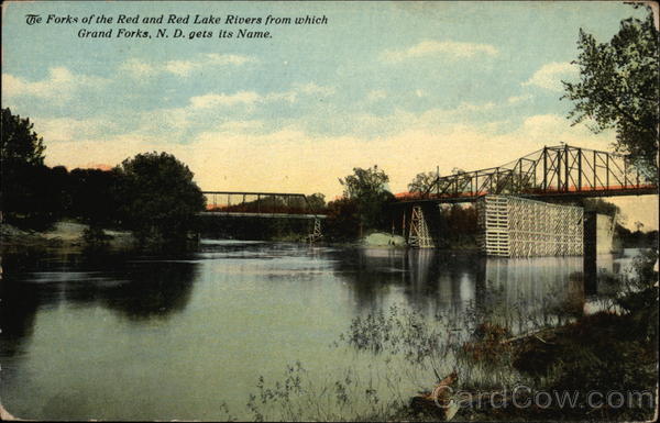 Front: The Forks of the Red and Red Lake Rivers from which Grand Forks, N. D. gets its Name. NO Back: A-11991 DOST THIS SPACE FOR ADDRESS ONLY.